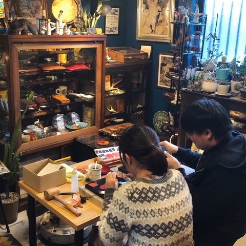 今日はギャラリースペースでワークショップを開催。 普段の来客用ソファやコーヒーテーブルを片付けて、ワークデスクを設置しました。初めての試みです。 結婚式でコースターを使いたいとのご依頼を頂き、お二人だけのワークショップになりました。 無事に成功と言いたいところですが...