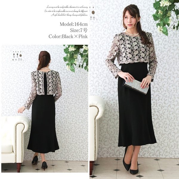 JUGEMテーマ:結婚式 贅沢チュールが美しい留袖クラスのフォーマルワンピース https://store.shopping.yahoo.co.jp/koran/ko19-d01.html 色:オフ×ピンク/ブラック×ピンク サイズ:7・9・11・13・15号 価格:32,184円 立体感のある刺繍レースがとても美しく印象的 上品で高級感もあるデザインなので、留袖の代わりとしてもお使いいただけます ボレロとワンピースを一体化しているので、重ね着のようなもたつきもなく スッキリとしたシルエットを作り上げます