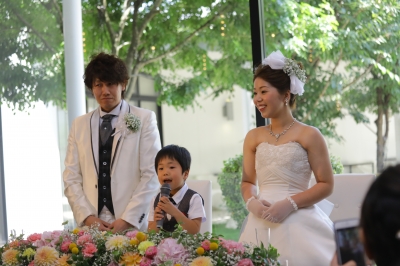 JUGEMテーマ:結婚式 こんにちは!! 今日は日差しは暑いものの 風が涼しくて気持ちいいですね♪ ご紹介が遅くなってしまいましたが 今日はYさんMさんの パーティの様子をご紹介しますね☆ H君の元気なウェルカムスピーチで パーティスタートです! 何度も練習している姿を見ていたのですが 本番も大きな声で元気よく かっこよかったです☺ 乾杯の挨拶をし...
