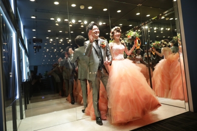 JUGEMテーマ:結婚式 こんばんは★ 以前ご紹介したKさんとSさんの 披露宴の最終章をご紹介いたします(*^_^*) お色直しをされたお2人は マジックミラーからご登場★ サーモンピンクのカクテルドレスが とてもよくお似合いですね♡ そんなお2人からのおもてなしは ガーデンに準備した お茶漬けビュッフェ♪ 老若男女問わずどんな方でも お召...