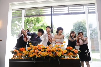 JUGEMテーマ:結婚式 こんにちは☆ プランナーの坂本です(^^)/ 前回ご紹介させて頂きました 新郎Hさんと新婦Mさんの パーティーをご紹介です!!! ゲストとのシャンパン祝砲で 楽しくパーティーがスタート(^_-)-☆ テーブルを周りゲストと写真を撮ったり、 お話をしたり 来て下さった皆様に感謝を伝えたお二人☺ すると突然!! 何やらDVDが流れ始め...
