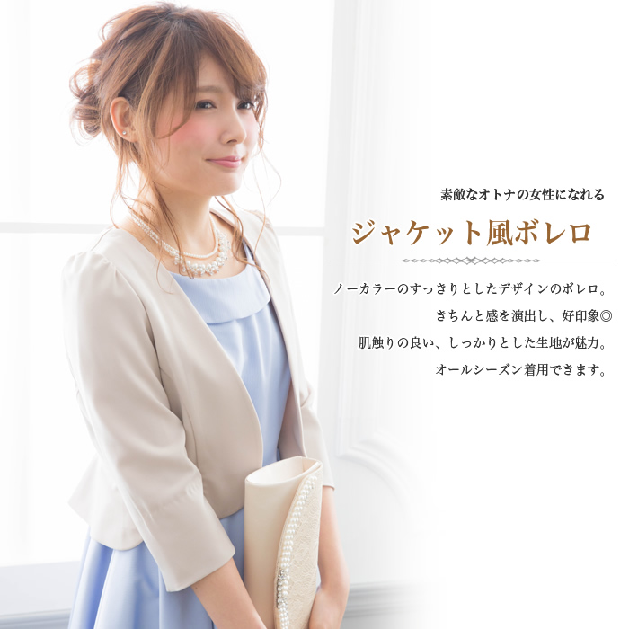 JUGEMテーマ:結婚式 ☆素敵な大人の女性になれるジャケット風ボレロ https://item.rakuten.co.jp/koran/ko7-ce-b047/ 色:ベージュ/ブラック サイズ:9・11号 価格:8,532円 好印象のぺプラムデザインのパーティーボレロ パーティードレスとの相性が良く、フォーマルシーンを意識した 品のあるスタイリングを表現できます