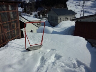 本日は @番頭と4号館館長は 貸民家みらい1号館屋根の雪下ろし。 3回目です。 だいぶ雪が落ち着いてきました。 温かいのですね。 軒先は融けています。 昨年の今頃は どんな感じだったかな・・・ と、調べてみると http://mirai-ura.jugem.jp/?eid=1390 まさに1年前の今日2月8日が 貸民家みらい1号館で 同じく3回目の雪下ろしでした。 今年の方が少ない気がします。 他人事ではない ゴースト問題について書いてありましたけど @番頭 JUGEMテーマ:古民家・田舎暮らしのススメ