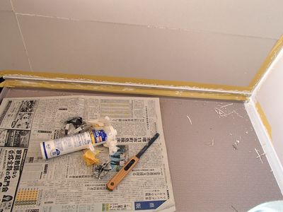 あれ以来ほったらかしだった風呂のコーキング。隙間が空いてて、水漏れしてるだろうなと思いつつ見て見ぬふりをしてました。しかし、やっと暖かくなって時間も取れるようになったので思い切ってやりましょう。現在のコーキングをカッターナイフでそぎ落とした後、マスキングテープ貼って、コーキング。その後は扇風機で乾燥を促し、風呂に入る前には手に付かないぐらい固まってくれました。本当なら完全に乾くまで風呂は使いたくないのですが子供もいるし、妥協。これでちょっと様子見です。草刈直後で広くなった庭(畑?)にトタンを...