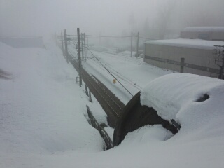 本日は会社付近から見た今朝のほくほく線まつだい駅。霧で見えませんね道路脇には雪山があります。最近、貸民家みらいのお客様から雪の状況に関してお問い合わせを頂きます。降雪はだいぶ落ち着いています。降ってもたいしたことはなく、途方もなく積もることはありません相変わらず積雪はかなりありますけどねでもやっぱりスタッドレスタイヤは必須です。@番頭JUGEMテーマ:古民家・田舎暮らしのススメ