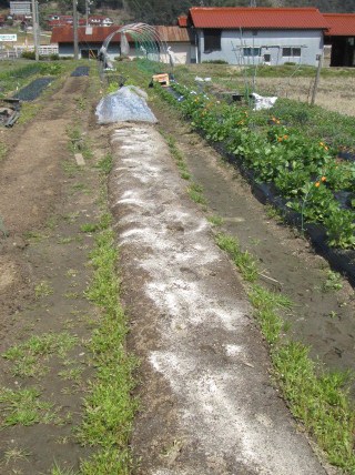 20度超えて 一気に桜の蕾が膨らんだ今日でした。明日後半には天気が下るというので、マルチの下がホカホカのうちに起してしとこ!ってことで インゲンの畝を起こして播いて・・・有機石灰を撒いて マメ用の肥しを施して〜、サクサク起してマルチを張って種を播いたら鳥害避けにネットをベタ掛けした奥のほうと、石灰撒いた手前の畝。この手前の畝もマルチまでは済んだので 明日播種です。今日播種した奥の畝の先には まだチーマ・デ・ラパが片付けてないから 近々延します。ってなことで 今作のインゲンは20m程植付ける事にし...