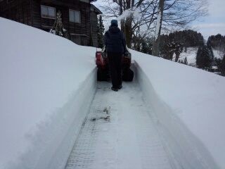 本日も。 貸民家みらいのお客様がいらっしゃるので、 除雪をしなければなりませんが、 只今、会社のトラックが修理中でして、 除雪機を運搬できません 仕方ないので@番頭と4号館館長とで 除雪は手作業 昨日は貸民家みらい2号館前を除雪して 餅つき用の臼(ウス)を車に積み込み、 貸民家みらい1号館前の除雪して 臼(ウス)を運搬 除雪機があればどうってことないのに… 全部手作業って 今朝の露天風呂 屋根はあるのですが、 吹き込んだ雪で覆われています。 昨夜からは50cmくらい積もっ...