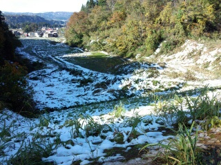 今朝は相当冷え込んで 積雪にはなりませんでしたが畑から500m先の山は すっかり雪が覆っていました。ホウレンソウ畝を作ろうと思ったけれど畝間が水溜りになってアウトなので予定を変更して 整地することにしました。毎年12月〜1月にやる作業ですが まぁ数日前倒しってことで・・・・整地といっても水が溜まってるから まずは溝を引いて排水を誘導して用水路近くへ水を溜め込んで 土で濾過して自然に放水しようと思います。土で濾過させないと用水路にドンドン土砂になって流れてしまいます。近隣の水田には付近の川から...