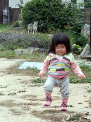 みほの1歳4ヶ月、すっかり上手に歩いてます♪蚊も出なくなったのでぽかぽか陽気の日はお外で遊ぼか〜。家の中より暖ったかいしね〜^^;笑ん?遠〜〜くから注がれる熱い視線・・・みほの気を付けて!!!!!なんと後を付けられております!完全に狙われています!ロックオン!!ピンクの靴を履いた子供は歩くのに夢中で背後に迫る息の荒い変質者(笑)にはまだ気づいていないご様子!逃げて逃げて〜!!なんと大胆な変質者!\(゜ロ\)(/ロ゜)/早く気付いてーー襲われるーー食べられるーーーー!!・・・・あ、ご知り合いでしたか、失...