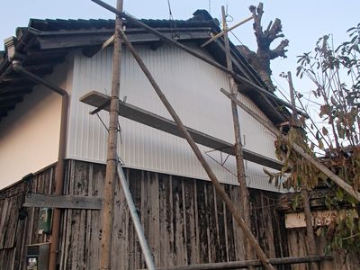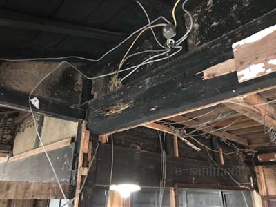 築90年の古民家です・・・ 総二階で縁側部分が下屋根となって四方回っています。 二階の外壁部分・・・ 支えている胴差しと呼ばれる桁(けた)材にシロアリ! #古民家再生#古民家#桁の取替#古民家リフォーム 台所として・・・ 使われていた部屋なので途中に支える柱もありません。 天井も貼られていたので桁を確認することが出来ません。 #シロアリ被害#エコボロン#ホウ酸系#白蟻駆除 まさか天井裏の・・・ 重要な桁がシロアリの被害があるなんて思いもよらず 急遽取り替えなければ作業が進め...