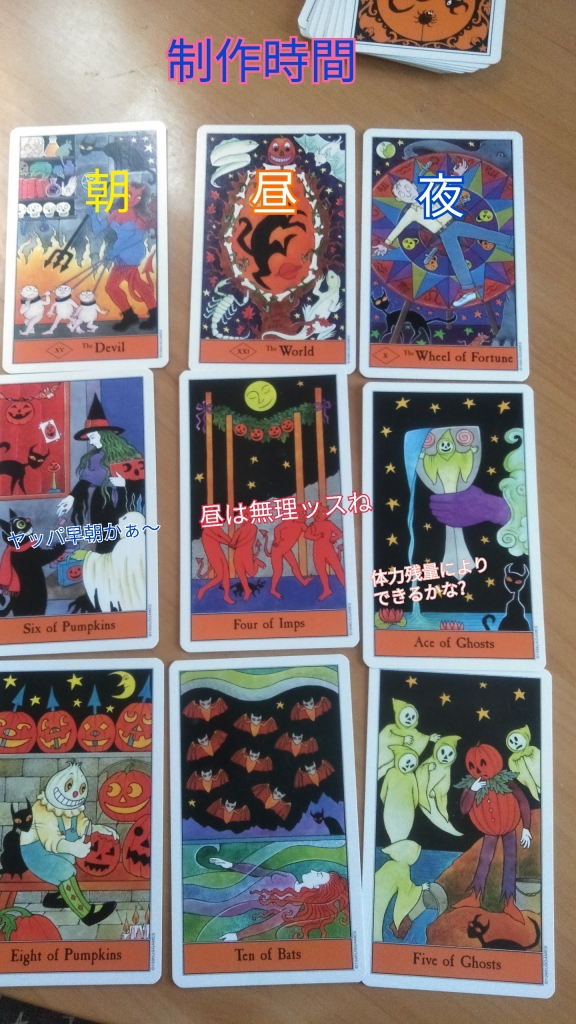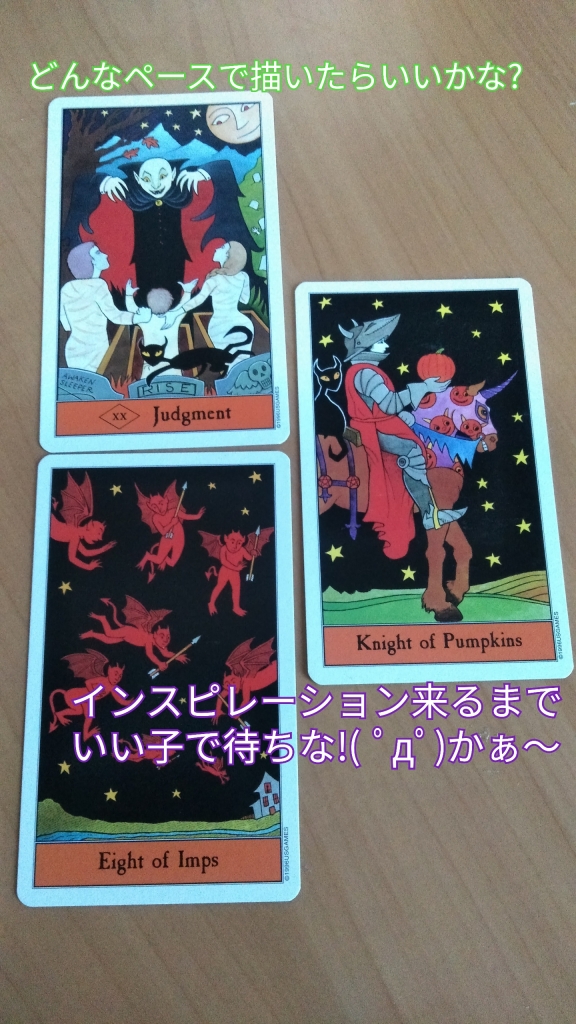 JUGEMテーマ:占い ブログや絵を描く時間帯を、いつ確保したらいいのか・・・タロット引いてみた タロットは最近お気に入りのハロウィンタロット ヤッパ 朝かぁ なんせ朝5時起床 昼は13時ぐらいから孫2号とお昼寝しないと午後が動けない 夜は、晩ごはん作ったら20時にバタンキュー ちょこっと寝て 22時以降に、お絵かきして(つ∀-)オヤスミー まあこんな感じ😁😁😁😁 夜は、空いた...