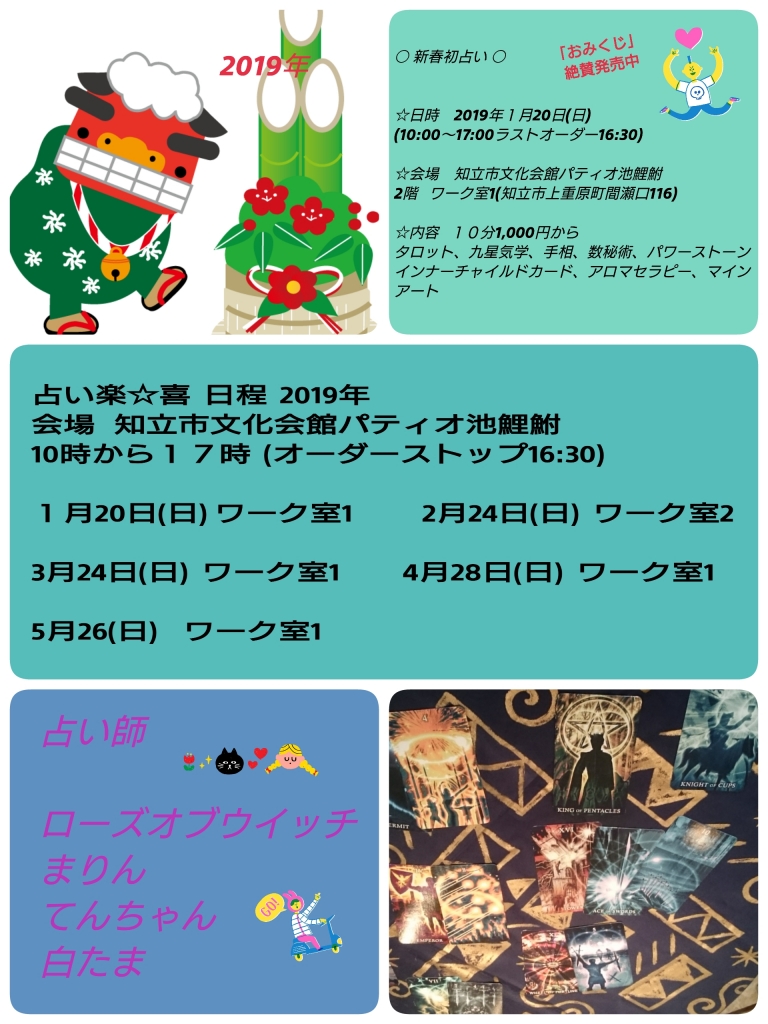 JUGEMテーマ:占い 占いイベント楽喜とワークショップのお知らせです 占い楽喜 日時 4月28日(日) 10時〜17時 (受付16時半まで) 場所 知立市文化会館パティオ 2階ワーク室1 ワークショップは「アロマクラフト」 講師はまりんさんです(^-^)/ ・ 日時 同日 10時〜12時 ・バスソルト、バスバブルを作ります ・ 3個くらいできる予定です ・定員6名 ( 先着順ですよ〜) ・ 参加費 1,000円 ☆ 皆さん、遊びに来てくださいね〜☆ メンバー一同お待ちしております(^-^)/