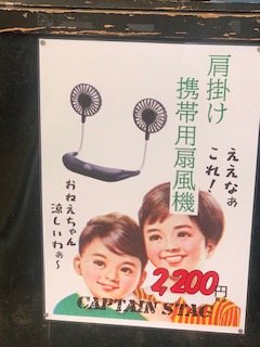 いつまでたっても暑いですね(-_-; 「体温以上の気温はもうおしまいにしていいよー」って大声で叫びたい! ハンディ扇風機が数年前から流行っていますが、今年はWで肩掛け扇風機が出ています。 出勤途中に見かけるこちらのポスター。 商品は令和だけど、絵は昭和ですね。 でもって、、まぁまぁいいお値段ですね。 JUGEMテーマ:夏の暑さ対策