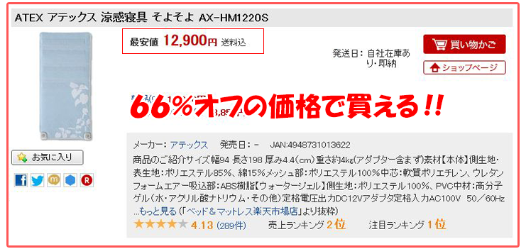 ax-hm1220s 涼感寝具 そよそよ 価格ガイド | 2014.07.19 Sat 19:28