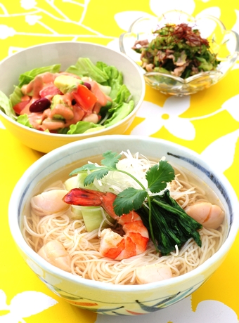 料理教室 家庭料理のレシピ 手作りお菓子 たのしい体験教室 お料理初心者! 野菜 簡単お手軽レ・シ・ピ♪ 今日の*おいしい* 夏の暑さ対策 こんにちは!(^^) 本町スタジオ 四折です 6月にはいり、暑くなってきましたね、、、 食欲がなくなってきたときには、コレ 魚介の汁ビーフン 牛肉と胡瓜のナンプラー和え アボカドと豆のメキシカンサラダ 今回、このメニュー すべて食べても518kcal ボリュームがあって、ライスヌードルなので 腹持ちもよく...