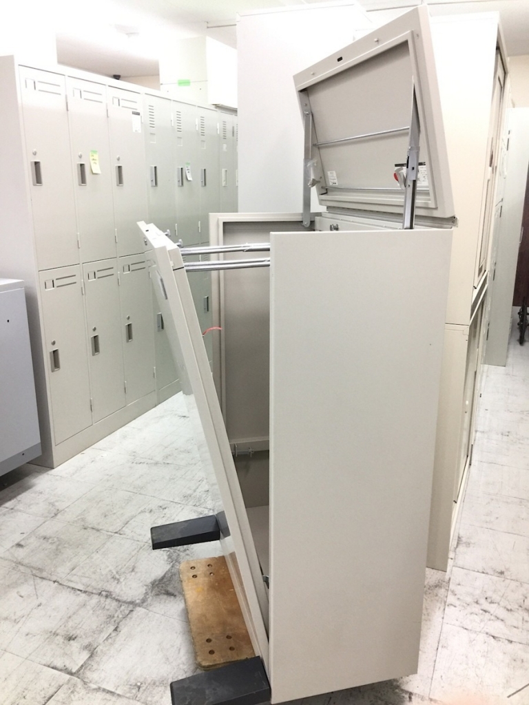 JUGEMテーマ:リサイクルショップ 図面を垂直に収納できる省スペース型保管庫。 図面を丸めず折らずに整理する図面用システム保管庫。 テープボードに貼った図面を垂直整理で保管するので、平棚式に比べて1/2.5の保管スペースで整理可能なスペースセービングタイプ。 サイズ脚含む(約)D605mm×W785mm×H1126mm 品番 1108BN 価格 新品本体価格 ¥167,000+消費税 サイズ A1 適正収納枚数(枚)670 *鍵2個付 店頭販売価格69,800円(税別 http...
