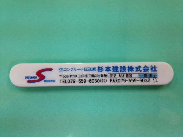 JUGEMテーマ:フルカラー 今回の製作事例は UVフルカラー印刷のマグネットバーです。 工事現場で働くスタッフの方たちに配りたいと、 杉本建設株式会社様よりご依頼をいただきました。 事前にサンプルをお送りしたところ、 気に入っていただけることができ、 すぐにお申し込みをいただくことが出来ました。 会社イメージカラーの 赤と青のロゴマークを左がわに、 会社名の下がわには、 ホームページを見てもらいやすいように インターネットの検索窓も印刷をしました。 A4用紙4〜5枚をキャッチする磁力につ...