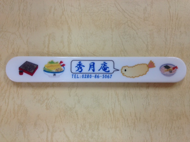 JUGEMテーマ:フルカラー 今回の製作事例は UVフルカラー印刷のマグネットバーです。 茨城県猿島郡境町の蕎麦屋『秀月庵』様から 日ごろの感謝の気持ちとして、 常連様にお渡ししたいと、ご依頼いただきました。 また、常連様以外にも、ご家族連れでいらした方には、 お子様に喜んでもらえるように、 お渡しされる予定だそうです。 フルカラーで、お蕎麦や天丼のイラストを入れて、 目で見ておいしさが伝わるようにしました。 また、『秀月庵』の店名を、 海老の天ぷらがふきだしからアピールする、 かわい...