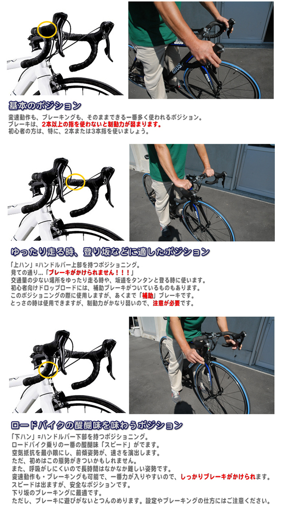 JUGEMテーマ:自転車 こんにちは 今日は、ドロップハンドルの基本ポジションをHPに掲載しましたので、ご紹介〜 ※詳細は画像をクリックください。HPへ移動します。 弊社のお客様のほとんどは、初めてスポーツバイクに乗られる方です。 初めからロードバイクを...と言われるお客様は少なく、 クロスバイクを買われてから、ドロップハンドルのロードバイクに乗り換えるお客様が多いです。 弊社では、「初めからロードにしとけばよかったぁ」と、残念がられる方がほとん...