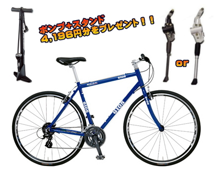 JUGEMテーマ:自転車 弊社の売れ筋NO.1 全国的にも品薄な貴重品 GIOS ジオス クロスバイク MISTRAL ミストラル(2016) が入荷しました 8月から9月入荷予定といわれておりましたが、1か月早く再入荷です 全車種そろいましたよ〜 ただし...かなり人気の為、すぐに完売します... ご注文はお早目に 通常販売 と ポンプ+サイドスタンドをつけたプレゼント付販売 の2種類をご用意 通常販売はこちら → http://www.hirosesyoukai.com/?pid=94438468 プレゼント...
