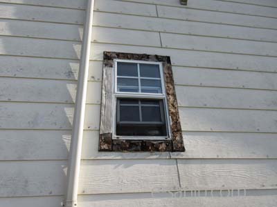 大型連休って・・・ お休みだから「商談」できる最高のチャンスですね! 本日も・・・ 午前中、事務所へ来客があり打ち合わせでした。 現在工事中の現場で・・・ 輸入住宅を20年ほど前に建てられたお客様。 完全洋風のデザインには憧れてしまいます。 しかし、窓枠が・・・ 大変なことになっていました! 窓枠の素材が・・・ おがくずを固め表面に塩ビシートを貼り付けたもの。 紫外線などによる劣化でしょうか?ぼろぼろです。 矢印の・・・ 破風板と呼ばれる部分も穴...