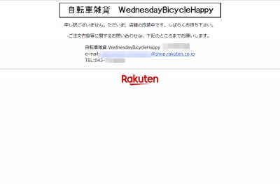 JUGEMテーマ:ネットビジネス 「自転車雑貨 Wednesday Bicycle Happy 楽天市場店」は閉店いたしました。 ご愛顧いただきありがとうございました。 今後は自社ショップ、「自転車雑貨専門店 Wednesday Bicycle Happy!!」をご利用ください。