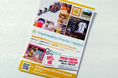 JUGEMテーマ:ネットビジネス 10日(土)と11日(日)に幕張メッセの近くでクーポン配りをします。 僕のショップ、自転車雑貨専門店 Wednesday Bicycle Happy!! でお買い物が10%オフ(お買い上げ3,000円以上で)になるクーポンです。 先日のさいたまクリテリウムの時にも路上でクーポン配りをしていたのですが、好評でしたのでまた配布しに行きたいと思います。 場所は多分、海浜幕張駅からサイクルモード開催中の幕張メッセの間の路上の予定...