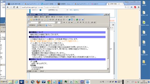 JUGEMテーマ:ネットビジネス 前にも書いたけれど、ヤフオク、Yahoo Shop,Amazonの商品説明,ebay みんなhtmlが使える。 けれどWYSIWYG機能がなかったり、あってもちょっと満足できない。 いろいろいいHTML作成ツールがないかとおもって探してたんですが。 今のホームページをつくるのだったら、DreameWaverとかいろいろあるんですが、 最近のツールってCSSが前提になっていて、各サイトでは利用できない。 CSSなしのHTMLコードをつくってくれるソフトがないかとおもって探していたらあ...