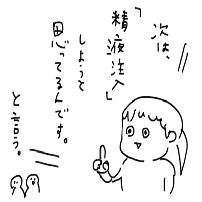 JUGEMテーマ:妊活! 会社の妊活仲間や妊娠した上司、友人などに不妊治療の話をしていく中で 言い方を変えるだけで捉え方が変わる言葉がありました。 それは・・・人工授精を「精液注入」と呼ぶヽ(*´∀`)ノ 私の周りの人達は人工授精=顕微受精 だと思っている方が多いので 「「精液注入」するんですよ〜!精液を消毒していいやつだけぴゅーっと注射器でね♥」 と言うと 「へ〜!」ってソフトに受け入れてくれます。
