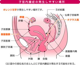 JUGEMテーマ:子宮内膜症 JUGEMテーマ:子宮内膜症 子宮内膜症の最初の発生など、目には見えません。 それが1mmほどの組織に発達するのにどれくらいの年月がかかるのかはわかりませんが、目で見える大きさになった部分を 病変といい、病変が集合している場所を病巣といいます。 以下、子宮内膜症の種類です。 ?骨盤腹膜子宮内膜症[骨盤に守られた下腹部の腹膜の表面に点在するもの] もっとも多くの人に存在する病変ですが、画像検査ではわからない。癒着が発生しやすい。場所による発生頻度は日本と 欧米...
