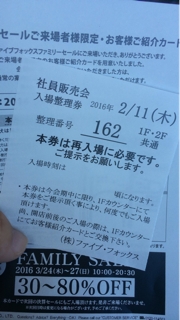 テーマ:不妊治療 今回初めて、ファイブフォックスの社員販売会(ファミリーセール)に行ってきました! いつもはポイントをつけるため、定価で購入していましたが、 今回はなんと最大90%OFF!! どんなものかと気になり原宿まで来ました♪ 10:00オープン予定でしたが、ネットで調べると結構並ぶという情報を前もって得ていたので… 少し早めの9:35に到着したのですが、既に大勢の人が…Σ(゚д゚lll) 整理番号は162でした。 メンズやキッズ、ベビーの取り扱いがあるからか、 女性...