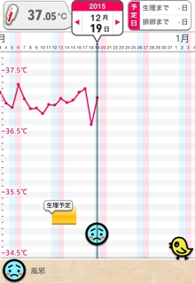 テーマ:不妊治療 昨夜遅くから出血。 なんだかお腹がキューっとするなぁと思っていたんですよね… そして、風邪のせいで咳がひどく眠れない夜。 カラダも熱くなかなか熟睡できませんでした。 体温も高温期並み…f^_^; 今日から仕事! いつも以上に気合を入れて頑張ります!! ↓もしよろしければポチっとお願いします☆