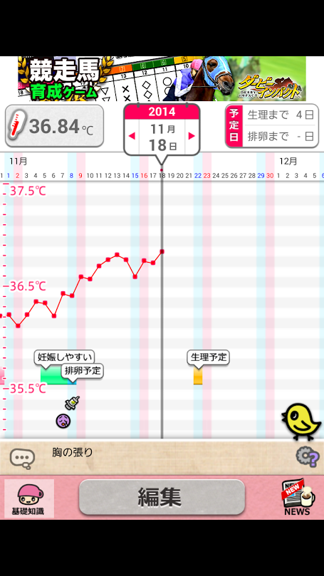 JUGEMテーマ:不妊治療 高温期10日目です。 特に妊娠の兆候もなく、ボーっと毎日を過ごしております。 生理前にいつもなる、胸の張りが出て来ていて痛いです。 最近の体温↓ ガクっと下がっている日がありますが インプランテーションディップという可能性は皆無です。 というのも、その日は友達が京都まで遊びに来てくれるというので ワクワクしすぎて、全然眠れなかったのです。 32歳にもなって、恥ずかしい・・・ 友達とは、萬福寺、平等院、東寺とお寺巡りをしました。 紅葉もボチボチで、やた...