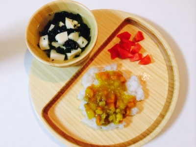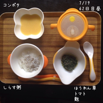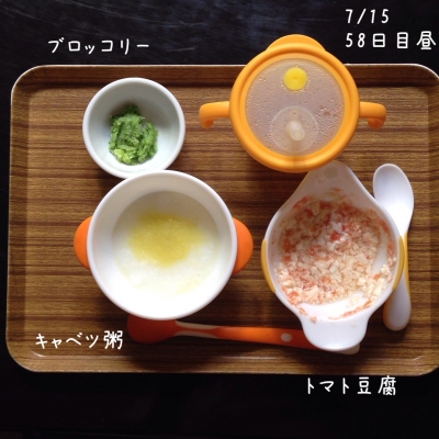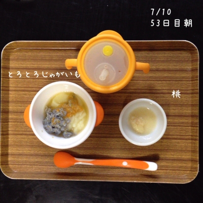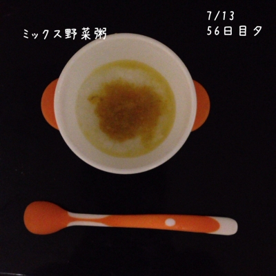 ・お粥・トマト+豆腐・にんじんかぼちゃ+大根大根をみじん切りし直したら、食べてくれました。まだまだみじん切りかなあ。トマト豆腐は好きみたいで、お粥よりもそっちをよこせと無言の(指しゃぶりでの)圧力…。お粥(最後は野菜を混ぜた野菜粥)を見せても指しゃぶってるのに、トマト豆腐見せたら食べるんだよなー。自我の芽生え怖い(llllll゚Д゚)ヒィィィィ・納豆粥・角切り野菜ミックス(BF)+トマト忘れたころに納豆。一応みじん切りにしたんですが、お気に召さないみたい笑。えずいて、途中ちょっと吐いて、半分以上残した。BFの角切り野...
