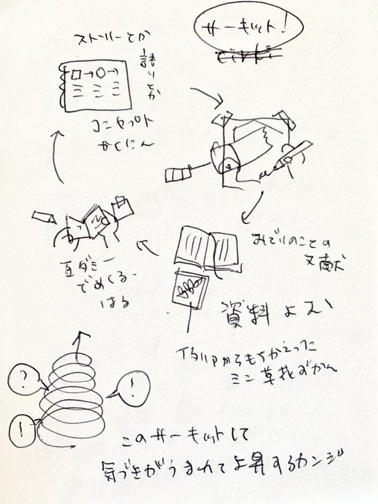 4日目に突入! 昨日の、中間発表しあったがあり、 みんなでそれぞれの制作体験をシェアできたので ググッとさらに距離が縮まった感じがした。 朝のバスでもみんなの顔が少し和らいでいる。 ・ ・ モヤモヤの雲からは脱出していて、 ・ 手を動かして描いてみる、話を練る、豆本で確認、 ・ また描いてみる、話を検討、豆本で確認、、、 ・ の繰り返しです。 ・ ・ ・ Diegoが絵本づくりで紹介してくた、 ・ シンプルな小さなダミー本を見て、 ・ 久しぶりに...