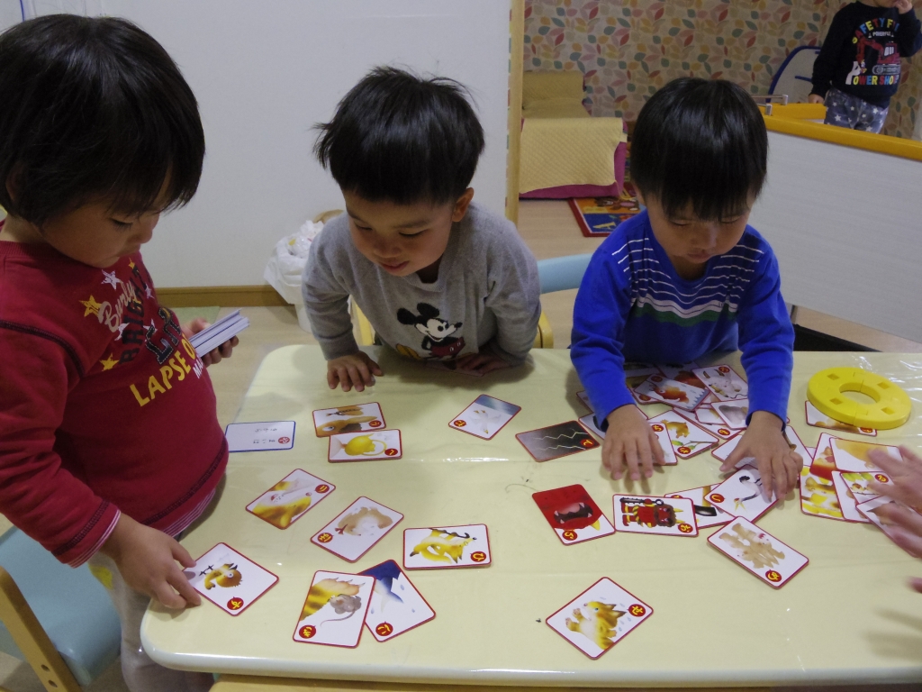 JUGEMテーマ:こどもと一緒に♪ 新年明けましておめでとうございます。 昨年は、各地で地震や台風等、自然災害が発生し、今も苦しんでいる 方々がいらっしゃいます。 新しい年は、全ての方が平和で安心して過ごせる年になるようにと願います。 本年もどうぞよろしくお願い致します。 お正月の伝統遊びのひとつ「かるた取り」をしました。 読み手と取り手に分かれて、真剣な表情で遊んでいます・・・ 「ねえ、ねえ、これかなあ?」 慎重にかるたを選んでいますよ。...