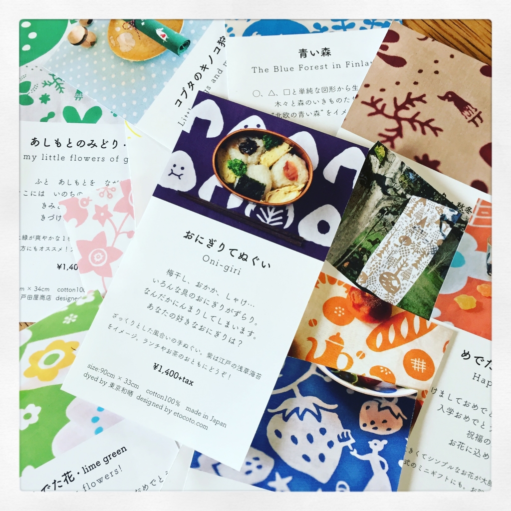 お知らせが遅くなりました! etocotoてぬぐいですが、 mini story cardが一緒についてくるようになりました! ずっとてぬぐい単品よりは、 タイトルなり、ものづくりのソースとなる何かを お伝えしたいなあと思っていて。 後回しになっていたのですが、 真夏の東京蚤の市をきっかけに、 作って見ました。 えいやっと集中してみたら意外とすぐにできました。 驚き。 ツルツルの小さな紙ですが、 お使いになる時に 「へえ〜そうな...