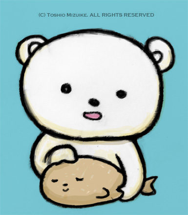 JUGEMテーマ:こどもと一緒に♪ 長女が水彩絵の具で『お刺身の盛り合わせ』を描いていた。 姉妹でテーマ「好きな物」のお絵描きしてたらしい。 長女よ、もう小6だぞ。 しろくま。 アザラシ的な子をナデナデしてます。