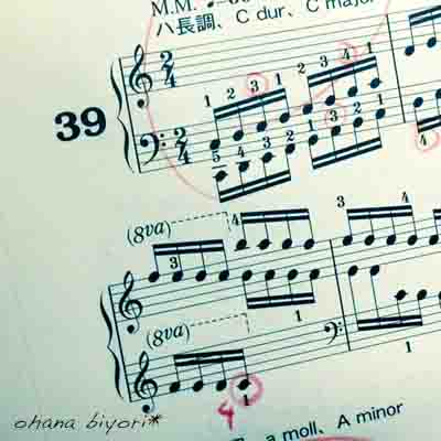 小学5年生。hana。イライラするもの。 ハノン。39番。ハ長調。イ短調。ヘ長調…とずっと続きます。 離れて聴いていると弾けてます。 が‥‥‥ 指送りの練習なもんで…音だけではね…。 超適当というか…まあ器用に指を運びます。 母に指摘され…しぶしぶやり直し。 左右バラバラに指を規則正しく動かす〜まあ〜大変〜♪ いつの間にか合わなくなる〜♪ ハイ。片手ずつ〜♪ イライラ度MAX! でもやってますよ。この地味〜な練習を… (コツコツ…積み上げてね。母...