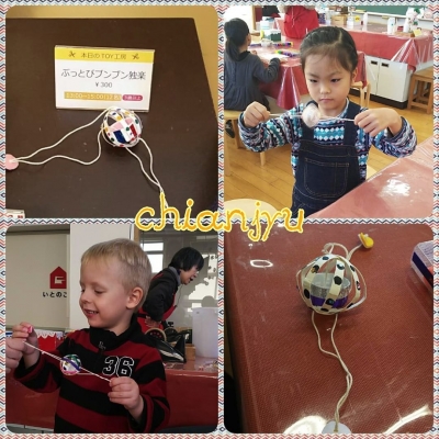 2019年1月11日(金)は、 月に1度の東京おもちゃ美術館のトイ工房でした。 2019年1月は『ぶっとびブンブン独楽』工作でした。 http://goodtoy.org/ttm/event/handmade_1901.html#harad 厚紙で球体の籠を作って、中に玉を入れます。 ヒモをつけて回して引っ張ると すごい勢いのぶんぶんゴマになります。 音もすごいんですよ! 北海道から来た親子さん、 海外から来た親子さん、 素敵なセンスをお持ちのご婦人 とそれぞれ個性的な感性に感心でした。 完成したら、ぶんぶんこまを回...