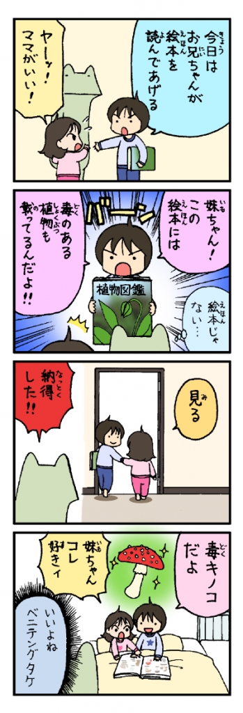 幼稚園の年長さんだった兄太に 「毒のある植物も身近に生えているから、知らない花や実を口に入れないように」 と話したところ、有毒植物に興味を持つようになりました。 私が幼稚園の頃、周りの子たちがこぞってツツジの花の蜜を吸っていたので、 息子も園庭で他の子につられて妙なものを口にするんじゃないかと少し心配になったんですよ… 一過性のブームだったようで、今はもうそんなに興味はないようですが この頃はよく植物図鑑を開いては 「どれが毒の...