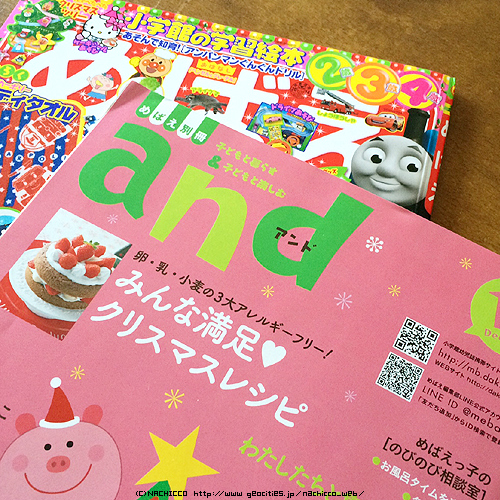 ただいま発売中の 「めばえ(小学館さん)」12月号に付属の 別冊誌「and」の懸賞当選者発表ページのイラストカットを 今月も担当させていただきました(*^^*) 今月のテーマは「クリスマスプレゼント楽しみだなぁ」。 サンタさんがプレゼント持ってきてくれるかな、と ワクワクしながら雪振る空を見上げてる、 男の子と女の子のイラストです。 「めばえ」は全国の書店などで購入可能ですので、 機会があればぜひ覗いてみてください♪ 今年度担当のこの制作も残すは3回。 ちょっと寂しいけど、残りの制作...