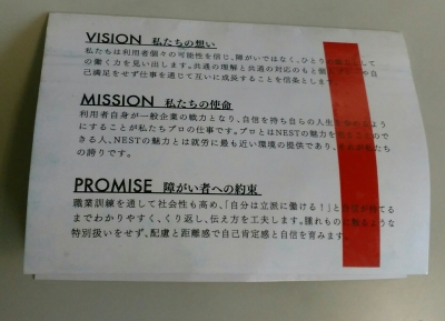 JUGEMテーマ:軽度発達障害児 私は昨年1年間育児休暇を頂き、今年の4月から仕事に復帰しました。 復帰後、私は利用者さんのAさんにとても驚きました。 Aさんは高校を卒業し、NESTを利用し始めましたが、利用開始当初は、なかなか作業に集中ができず、集中できるようにと衝立を設置したりあの手この手と悪戦苦闘の日々でした。 指先を使う作業はなかなか上手く行かず、できたとしても終日20個程でした。 Aさんは作業中に何度も職員が説明をするものの、理解できない自分が悔しくてか泣い...
