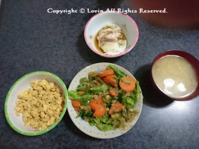春休み中にばるっちが作った、野菜炒め・スクランブルエッグ・ 味噌汁・ネエネ用の目玉焼き。 昨夜、母の帰宅を待ち切れずに作ったナポリタン。 私の実母へ。今年の母の日のプレゼント。 JUGEMテーマ:軽度発達障害児
