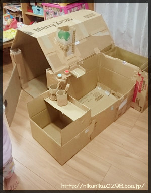 JUGEMテーマ:まいぺーすde育児 ダダ(にくさん)に、 「ヒミツ基地つくって〜!!」と言うあっくんのリクエストを受けて・・。 にくさん、こんなん作ってました。 一戸建てや(笑) さすがは2級建築士!! こそこそと入るじゅっこ。 何をしているんだろー?と思ったら。 こっそりとあっくんの妖怪Padで遊んでいた。 家の中に家って、変な気分・・・。 とりあえず、今年いっぱいは置いておこうかなー・・。 ...