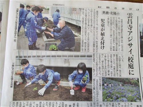 JUGEMテーマ:小学校生活のいろいろ アジサイの植栽のことが、テレビや新聞にとりあげられました。 今日は、秋田のさきがけ新聞に子どもたちの様子が載りました。