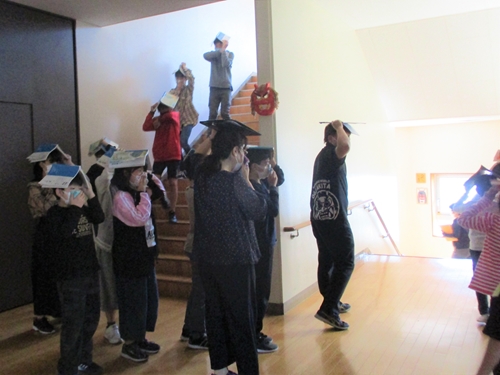 JUGEMテーマ:小学校生活のいろいろ 5・6年生が「北陽戦隊 約束守るンジャー」に扮して校内を見回り 素敵な行いをしている人に「守るンジャーシール」を貼っています。 「あいさつするンジャー」たちも時々登場して、下級生に大人気です。