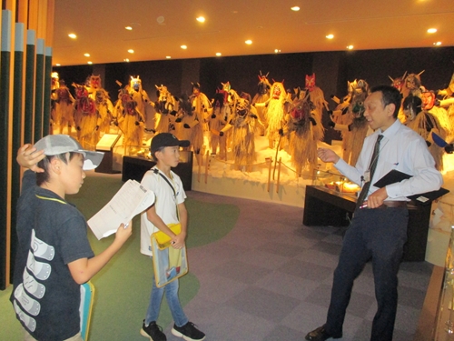 JUGEMテーマ:小学校生活のいろいろ 3年生が,ふるさと探訪で男鹿市を巡りました。 男鹿市中石の梨園・寒風山・なまはげ館・なまはげ伝承館と男鹿市の産業と観光の名所を訪ね 男鹿市のことについて説明を聞いたり,調べたりしました。 今回調べたことは,これからの総合的な学習の時間にまとめていきます。