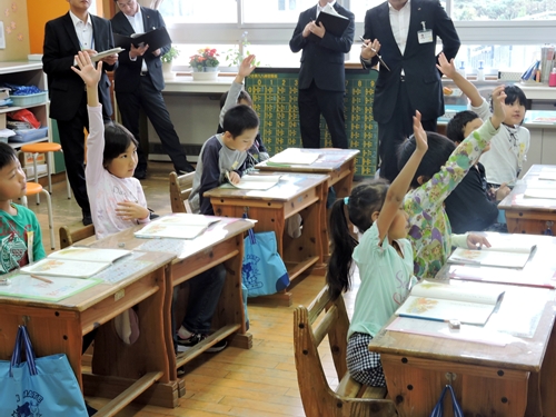 JUGEMテーマ:小学校生活のいろいろ 今日は指導主事の先生方をお招きして,1年生の国語科と6年生の特別活動の校内研究会が行われました。 1年生も6年生も,大勢の先生方に囲まれながらも,熱心に学習に取り組んでいました。 午後には,多くのご指導ご助言を頂き,大変充実した研修会になりました。 1年生の国語科の授業 6年生の特別活動の授業