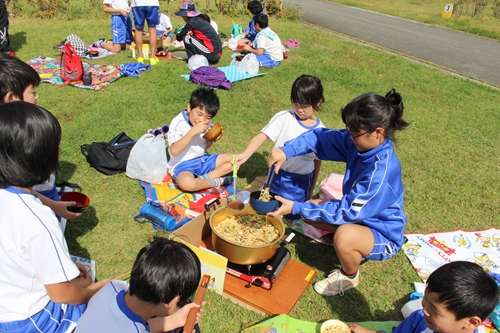 JUGEMテーマ:小学校生活のいろいろ 秋田の県民的行事 秋晴れの下で,なべっこ遠足を行いました。 縦割り班で作ったうどんの味はどうかな???
